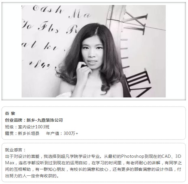 作为职业设计教育,河南超凡教育(设计学院)的就业优势尤为明显 。一方面学校重视学生综合素质的培养,把技能和素质教育有机结合起来,着力培养“有知识 、有技能”的复合型人才;另一方面,超凡和业内知名企业订单式培养、形成了一个系统规范的企业订单式就业网络,学校郑重承诺各专业合格毕业学生提供推荐就业服务,十年就业跟踪免费终身指导及再就业工程。
