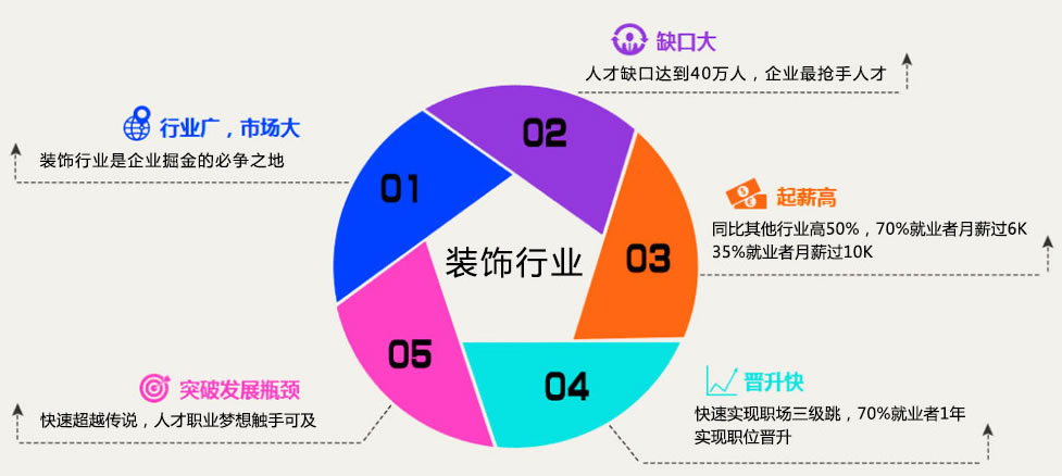 房价及移动互联网的迅速发展带动了互联网专业和装饰人才需求的上升,互联网薪资水涨船高,我校与企业的深度交流研发,创新出的课程满足企业用人的需求,高薪不是梦,就业无压力。